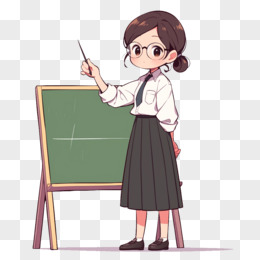 卡通风教师节黑板前的女老师免抠元素