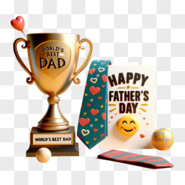 3D立体父亲节奖杯领带元素