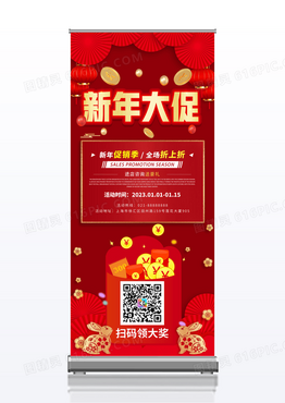 大红喜庆新年大促扫码领奖展架