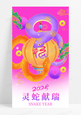 粉色敦煌渐变2025蛇年灵蛇献瑞新年海报