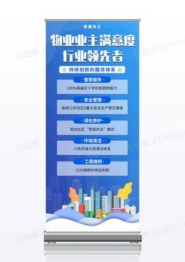蓝色简约物业业主满意度行业领先者宣传展架易拉宝