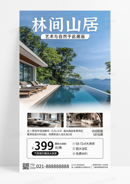 小清新林间山居木屋山间民宿酒店旅游手机宣传海报
