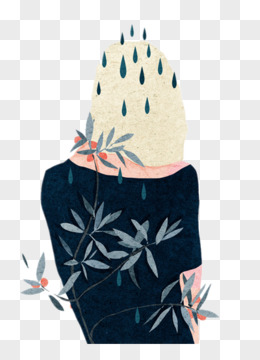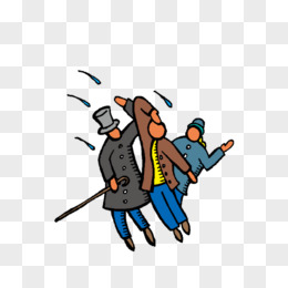 手绘扁平小男孩雨天刮风打伞免抠元素