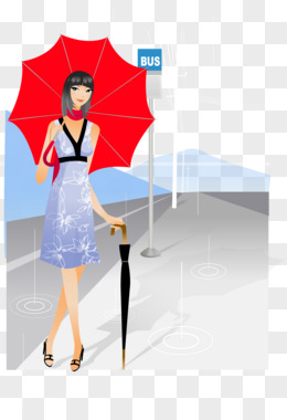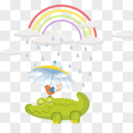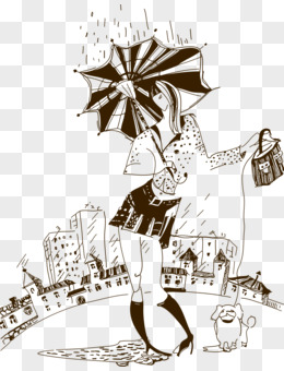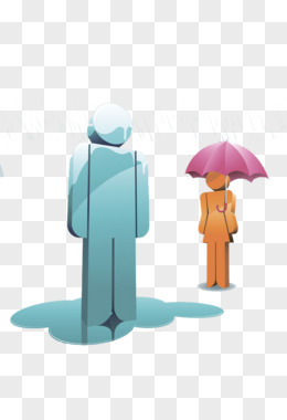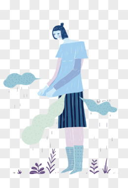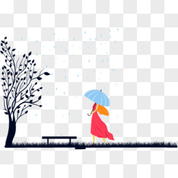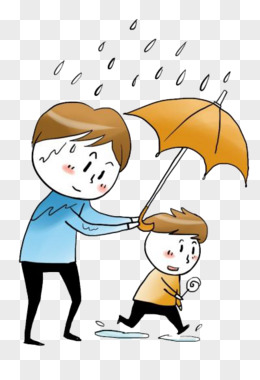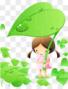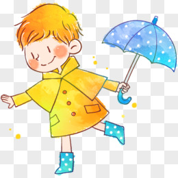 手绘卡通打伞的玩雨的小朋友免抠素材