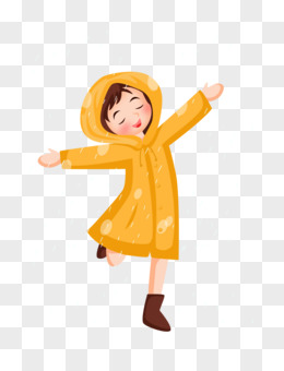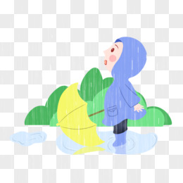 手绘卡通男孩下雨穿雨衣踩水塘免抠元素