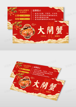 红色插画大闸蟹券代金券礼品券大闸蟹提货券优惠券设计