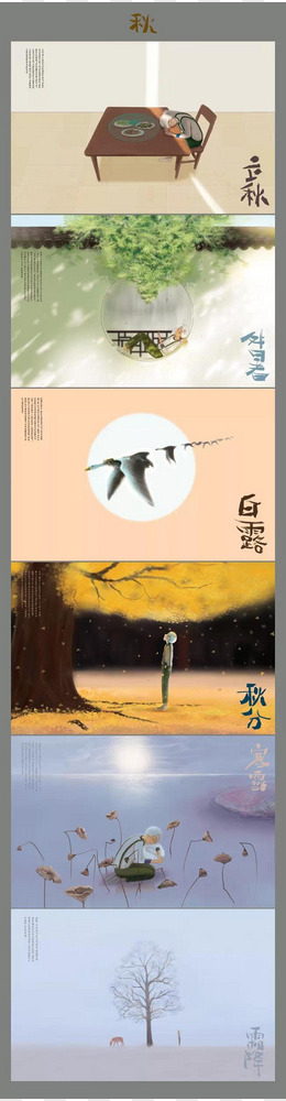 一组创意插画秋季立秋秋天节气可爱女生合集元素