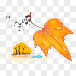 手绘卡通秋季落叶风景素材