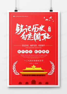 红色创意扁平风格无望国耻12.9运动纪念日海报