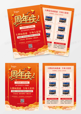 红色立体8周年庆礼惠全城店庆电器空调家电冰箱电视促销宣传单dm