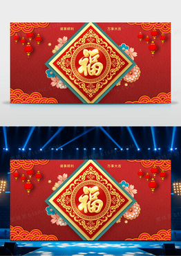 2023新年春节海浪立体感福字宣传舞台背景