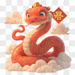 3D卡通新年装饰元素蛇和祥云免抠元素