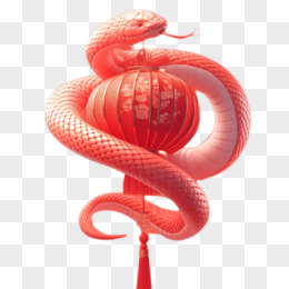 3D卡通新年装饰元素蛇环绕红灯笼免抠元素