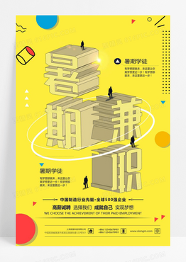创意立体字暑假兼职招聘海报