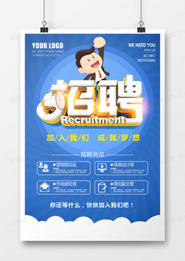 蓝色招聘立体字海报