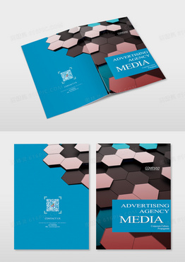 炫彩立体蓝色六边形马赛克广告公司图册封面