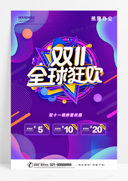 紫色简约C4D立体创意天猫猫头LOGO装饰