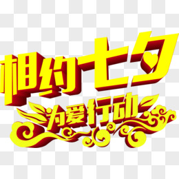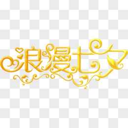 黄色相约七夕立体字设计