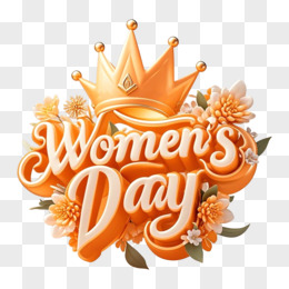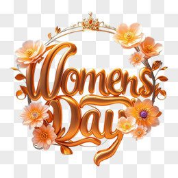 3D立体橘色三八节快乐women‘’s day艺术字免抠元素
