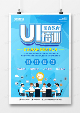 蓝色UI培训立体字海报