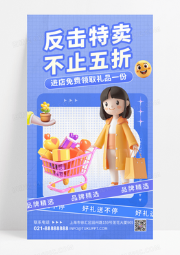 反季特卖购物3D人物渐变活动促销海报创意海报