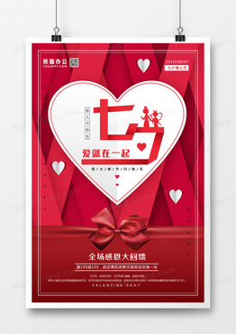 简约时尚七夕情人节立体折纸风海报