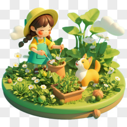 3D立体绿色藤蔓燕子边框春天卡通免抠元素