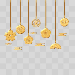 一组中国风剪纸新年活动插画金色立体合集元素六