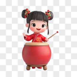3D插画小女孩打红色鼓免抠元素