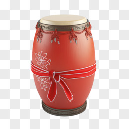 3D插画系着彩带红色鼓免抠元素