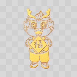 一组金色龙年剪纸风形象立体设计套图四