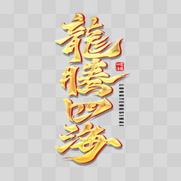 龙腾四海竖版金色毛笔字金色立体设计