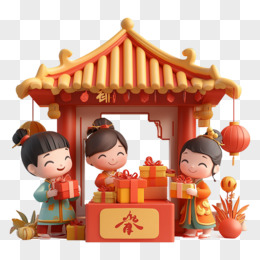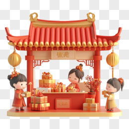 3D立体中国新年集市免抠元素
