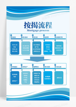 蓝色简约房屋买卖按揭贷款流程示意图海报