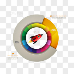 一组彩色圆环占比立体分类免抠矢量PPT元素