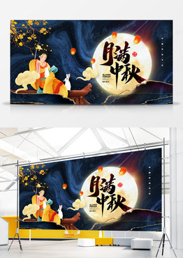 鎏金质感月满中秋传统节日中秋节宣传展板设计