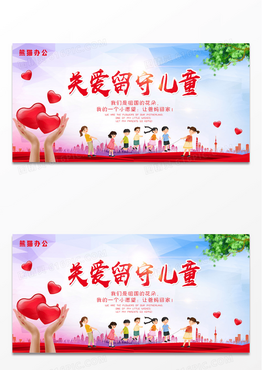 红色关爱留守儿童成长健康公益爱心卡通童真海报