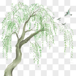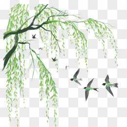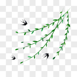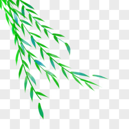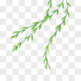 卡通手绘春天随风飘舞的绿色柳叶免抠元素