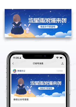 蓝色插画情感流星雨浪漫来袭微信公众号封面图片