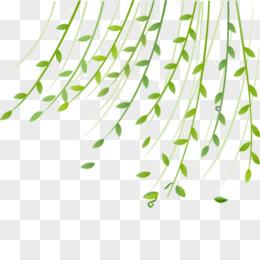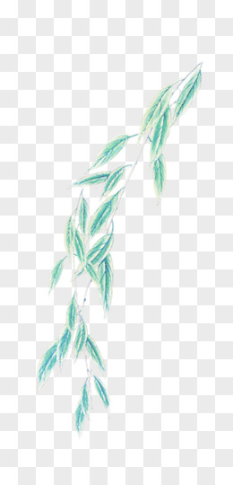 卡通手绘春天随风飘舞的绿色柳叶免抠元素