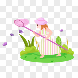 六一儿童节小朋友抓蝴蝶秋分立秋秋天元素