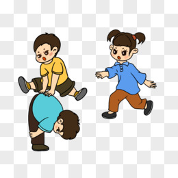 卡通复古同年玩耍嬉戏玩跳山羊素材