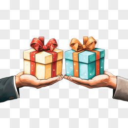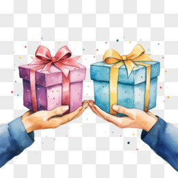 一组手绘彩色礼盒礼包礼物礼品合集系列四元素