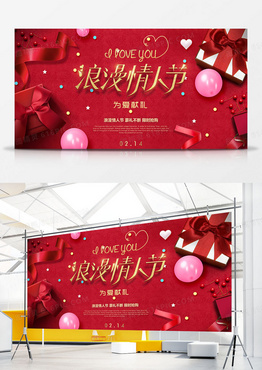 红色浪漫情人节礼物礼盒爱人爱情情人节庆祝海报