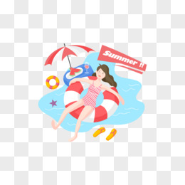创意卡通女孩游泳池享受元素