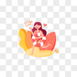卡通女孩跑向沙滩夏天元素