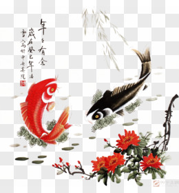 手绘卡通插画风虎年抱锦鲤免抠元素