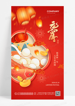 创意喜庆插画2024龙年元宵节借势手机宣传海报2024元宵节