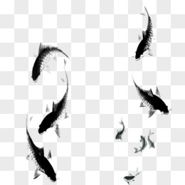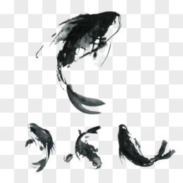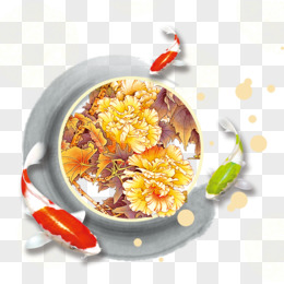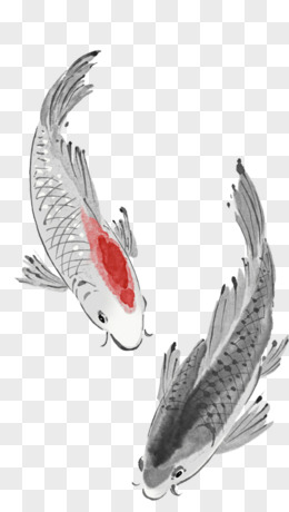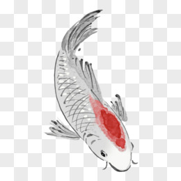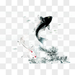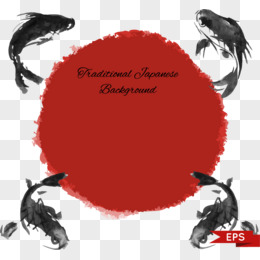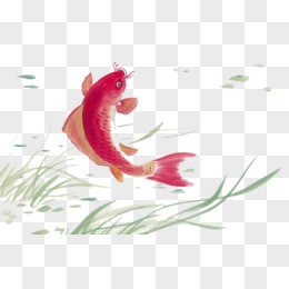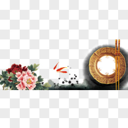 水墨红色鲤鱼和荷花矩形边框免抠元素