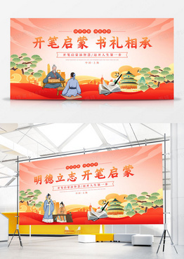 红色中国风读书启蒙明德理智开笔启蒙书礼相承展板